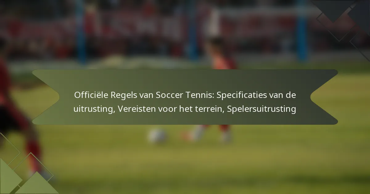 Soccer tennis combineert elementen van voetbal en tennis, en vereist specifieke uitrusting en veldspecificaties om eerlijk spel te waarborgen. Spelers moeten zich houden aan richtlijnen voor de balgrootte, nethoogte en veldafmetingen, terwijl ze ook geschikte schoenen en beschermende uitrusting moeten kiezen om de prestaties en veiligheid te verbeteren. Het begrijpen van deze officiële regels is essentieel voor zowel spelers als organisatoren om een optimale speelomgeving te creëren.